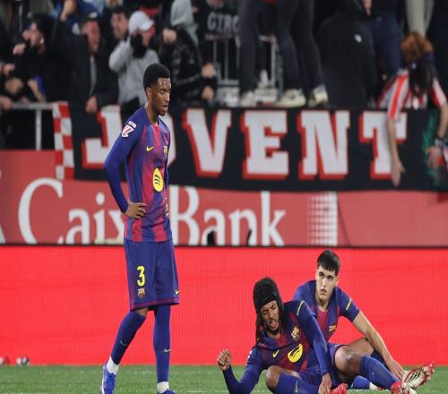 加泰德比夜,巴萨1-2憾负赫罗纳,库巴西头球难救主,登顶希望落空。蒙蒂利维球场战况激烈。上半场巴萨攻势占优:拉...