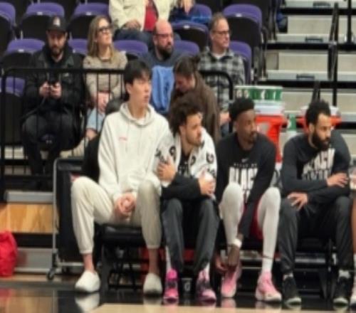 因背部拉伤缺席!杨瀚森身着便装坐在替补席支持混音队友