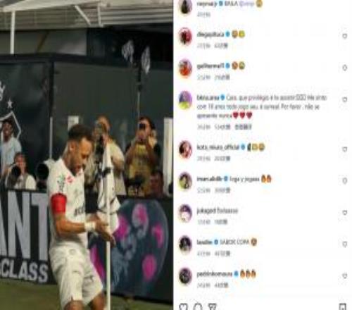 体育播报02月27日宣 巴甲第4轮,桑托斯主场2-1击败瓦斯科达伽马,内马尔梅开二度。赛后内马尔发文,晒出模仿维尼...