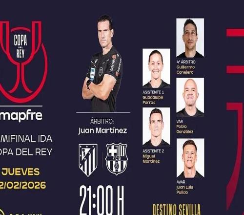 国王杯半决赛首回合马竞vs巴萨裁判安排:胡安马丁内斯执法