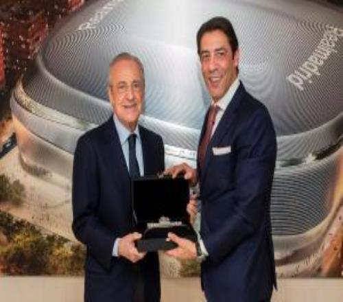 皇马vs本菲卡赛前,两队主席弗洛伦蒂诺和鲁伊科斯塔互赠礼物