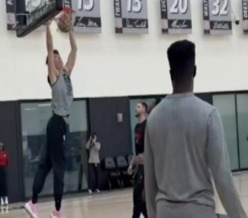 杨瀚森空接暴扣抢镜!开拓者队今日训练气氛较轻松