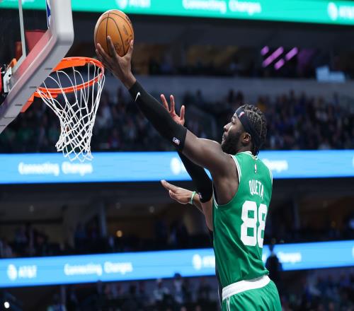 上半场比拼,凯尔特人内线科塔非常活跃。他出战18分钟,1投1中,罚球2中2,得4分12篮板1助2盖帽。正负值为+9。