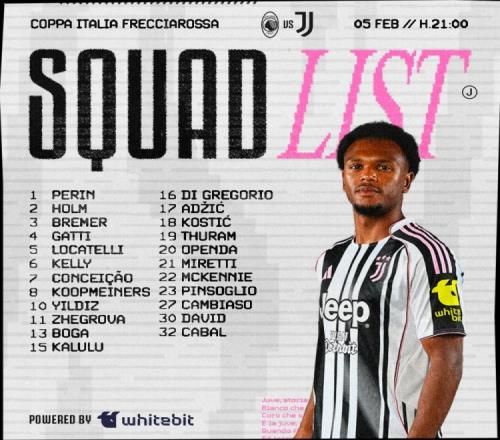 体育播报2月5日宣 北京时间2月6日周五凌晨4点,尤文图斯将在意大利杯1/4决赛客场挑战亚特兰大,斑马军团现在公布了大名单。