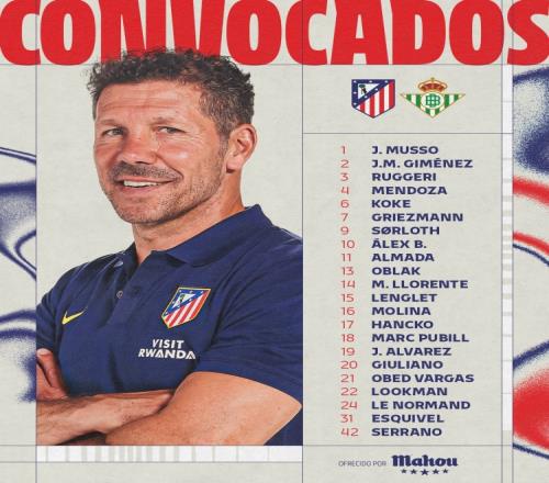 马竞对阵贝蒂斯大名单:卢克曼、阿尔瓦雷斯、瑟尔洛特在列_24直播网