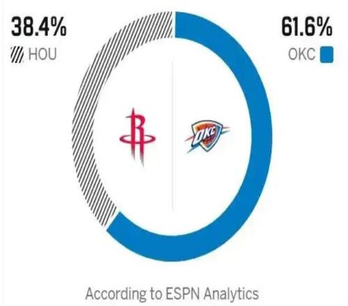 雷霆这边问题不大,主力缺阵,角色球员均能站出来承担责任,上一场虽然不敌马刺,但仍有3人砍下20+。但是火箭当下的困境不仅仅是伤病这么简单,进攻端空间糟糕,仅杜兰特能稳定输出,申京近期状态低迷,攻守两端心不在焉,阿门与申京不兼容、投射短板明显,谢泼德上场后易被针对,需队友频繁补防,一旦收缩内线便会给对手外线空位机会。加之火箭近期竞技状态糟糕、精气神不足,赛前ESPN看衰火箭,赛前胜率预测,火箭取胜概率只有38.4%,雷霆61.6%。