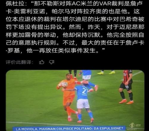 而奥雷利亚诺则在本赛季超级杯之前被拉齐奥指控,称罗基纵容这个人屡次且频繁的犯下低级错误;从那以后,这人就没有在重大比赛当中当过主裁判。