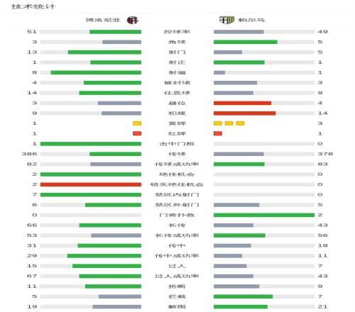 北京时间2月8日意大利足球顶级联赛第24轮,博洛尼亚主场对阵帕尔马。比赛中博洛尼亚一名球员吃到红牌,帕尔马一名球员累计两张黄牌被罚下。下半场补时阶段,帕尔马一名球员助攻克里斯蒂安-奥多涅斯打入全场唯一进球。最终比分博洛尼亚0-1帕尔马。
