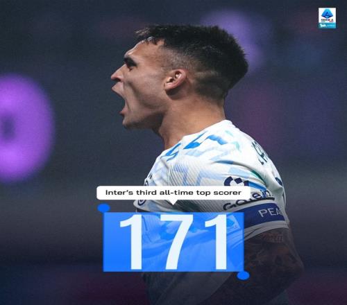 数据统计显示,劳塔罗已经为国米各项赛事打进171球,跻身队史射手榜第三位。