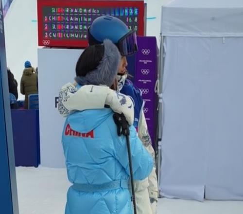 体育播报2月9日宣 米兰冬奥会女子自由式滑雪坡面障碍技巧项目决赛,谷爱凌第二次滑行出现失误,她的妈妈也赶紧给她送上了安慰。