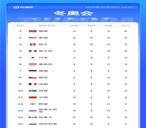 冬奥会奖牌榜:中国队1银1铜升至第11,挪威3金1银2铜位列榜首
