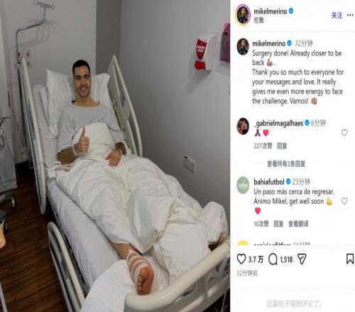 阿森纳中场梅里诺在此前遭遇脚部应力性骨折,他也在今日接受了手术。