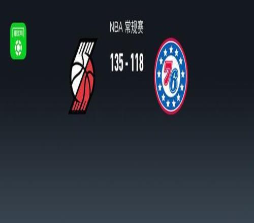 第四节开拓者朱-霍勒迪拿下5分,76人马克西拿下7分,最终开拓者135-118战胜76人