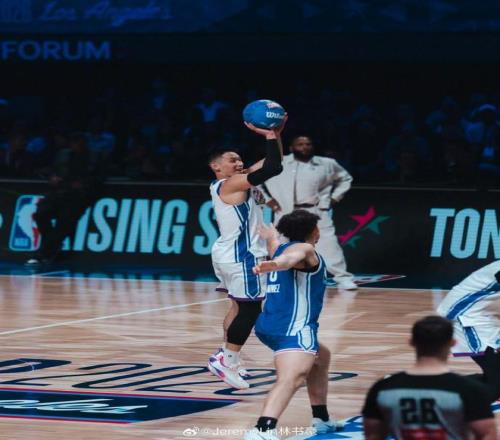 此次全明星,他与连续三年参赛的王鹤棣效力于字母哥队,林书豪在末节连中四分球,其中还有一记四分球翻倍,成功得到12分。