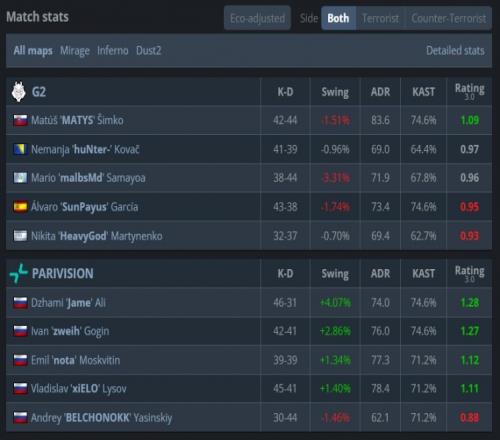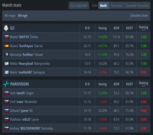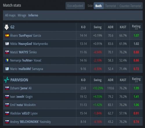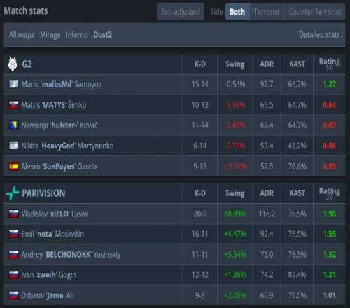 易边再战,malbsmd手枪局三杀联手太阳神打赢2v5残局,但PV强起翻盘拿到第10分,xiELO再轰双杀PV拿到第11分,MATYS第16回合出中门双杀但队友上A小悉数被团灭,PV拿到赛点。最终上帝开场大狙A大轰掉malbsmd,太阳神中路被nota打掉,G2难赢3v5残局,PV以13-4拿下图三,让一追二战胜G2,晋级1-1组,G2则掉入0-2组命悬一线!
