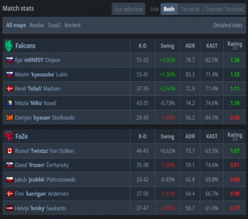 FAZE:karrigan、broky、Twistzz、jcobbb、frozen
