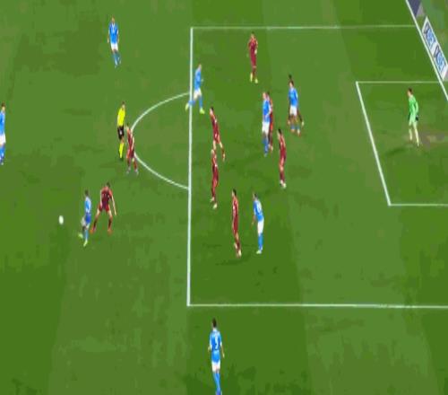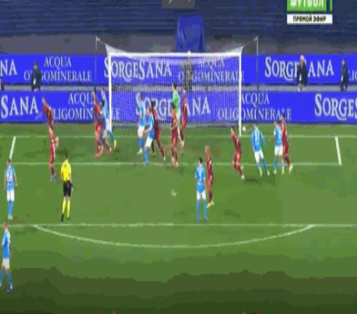 第40分钟,扳平比分,斯皮纳佐拉远射,皮球折射入网,那不勒斯1-1