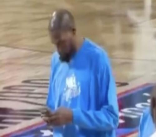 你也干了!美媒晒杜兰特在赛场上看手机:KD在试图效仿Shams