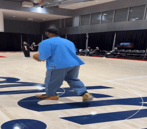 詹姆斯全明星赛前热身:超远logo三分+双手扣篮_24直播网