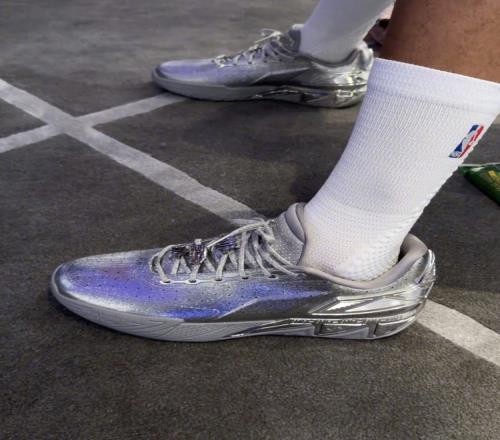 今日NBA全明星正赛日,勇士球星斯蒂芬· 库里穿着安踏KT11银色限定版亮相。