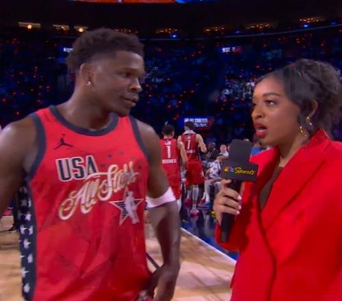 体育播报2月16日宣 NBA全明星正赛,世界队以35-37加时不敌美国新星队,赛后,爱德华兹接受了媒体采访。
