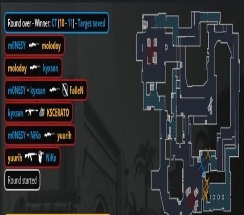 加时赛次回合,K3与Niko反摸A二楼被yuurih双杀,狂哥与教父进A扫荡下包扳平比分。