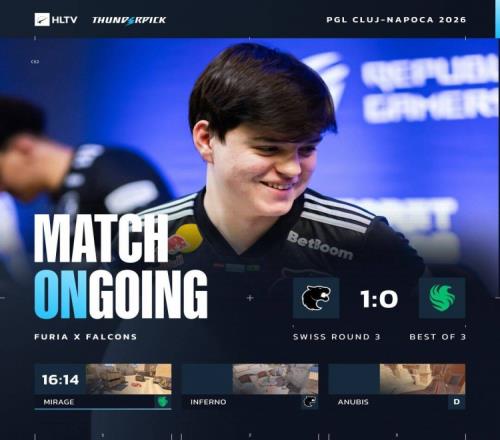 体育播报2月17日宣 PGL克卢日纳波卡继续进行,今日2-0组晋级战,由猎鹰Falcons对阵黑豹FURIA!