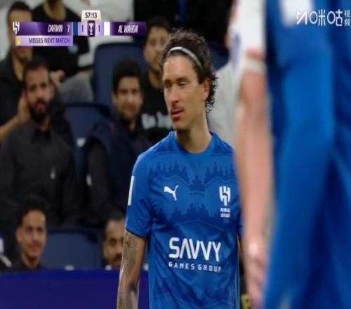 本场比赛第57分钟努涅斯不满球权判罚,对着马宁鼓掌染黄。努涅斯累计三张黄牌将停赛,缺席下场亚冠比赛。