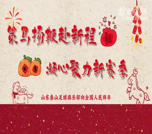 策马扬鞭赴新程,凝心聚力新赛季。山东泰山足球俱乐部给您拜年啦!祝大家马年大吉,万事顺意!