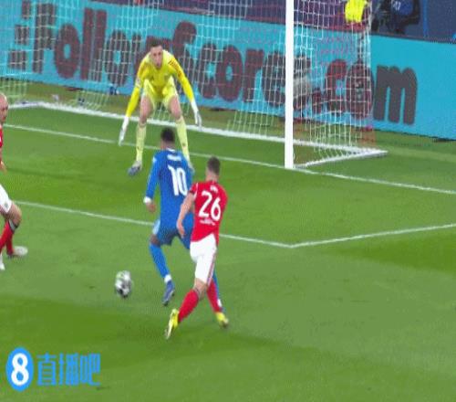 第17分钟,居莱尔右肋位置突施冷箭角度太正被门将化解↓