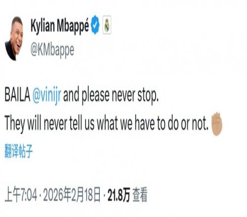 姆巴佩社媒写道:“跳舞吧,维尼修斯,永远不要停下来。他们永远无法告诉午夜福利视频导航该做什么或不该做什么。”