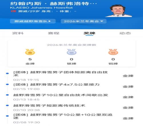 体育播报2月19日宣 挪威选手克莱博在米兰冬奥会越野滑雪比赛中获得第10枚金牌,创造了另一项冬奥会纪录。