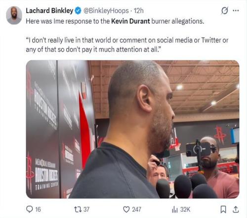 凯文-杜兰特在全明星周末期间陷入了小号言论的风波当中,前队友、现队友、前主帅科尔都因“疑似杜兰特小号”炮轰了一圈。北京时间2月19日杜兰特终于发声辟谣了。