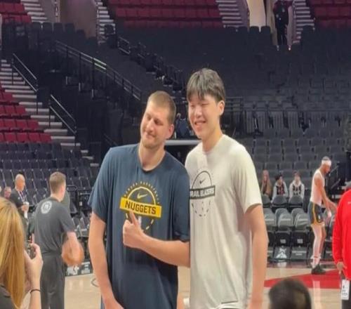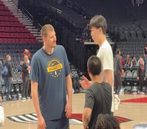 赛前,约基奇找到了杨瀚森,据开拓者记者Yovic报道,两人在打招呼后互相交流了一分多钟,随后合影留念。