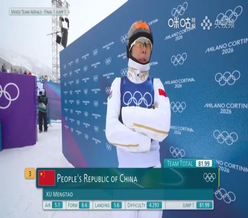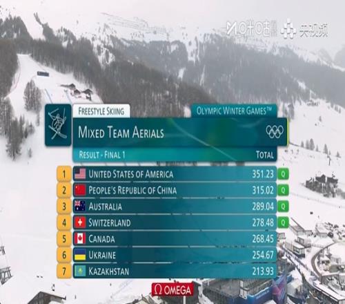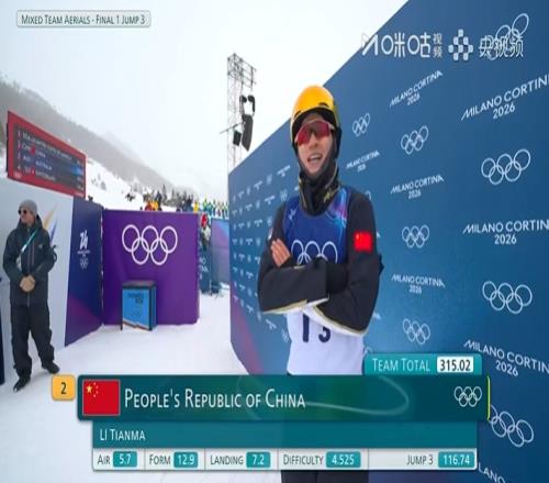 体育播报02月21日宣 米兰冬奥会自由式滑雪空中技巧混合团体决赛第1轮,中国队派出徐梦桃、王心迪、李天马参赛,第一轮结束,中国队以总分315.02分,排名第2,与美国、澳大利亚和瑞士一同晋级决赛第二轮。
