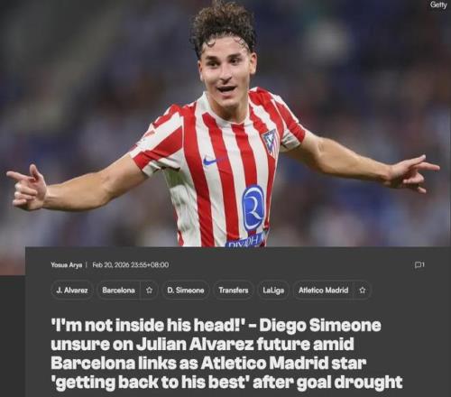 阿尔瓦雷斯和巴萨的传闻日益密切,而马竞主帅西蒙尼似乎对此无能为力,他表示自己也不知道阿根廷人心里的想法。