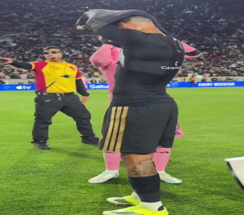 赛后梅西与洛杉矶FC前锋博安加互换球衣,美职联官方社媒晒出视频,配文:“梅西