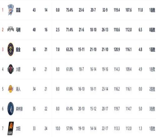 目前,西部第四、第五以及第六位都是在同一起跑线,接下来的输赢都会决定各自排名情况。