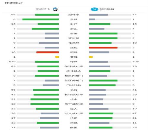 第81分钟,萨马尔季奇头球破门,亚特兰大2-1那不勒斯