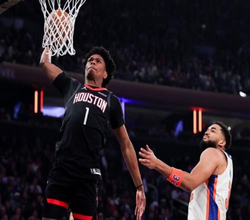 次节比赛,火箭进攻火力升级第二节轰下30+得分,且限制尼克斯连续两节单节不足30分。尼克斯一波7-0攻势扩大13分优势,火箭一波7-2攻势追分,阿尔瓦拉多三分命中。火箭之后以36-46落后,火箭连追4分,阿奴诺比暴扣,火箭一波10-2攻势追平。唐斯三分命中,火箭连得4分,申京单节4中4得到10分,引领火箭单节33-26净胜7分,上半场结束火箭54-53反超尼克斯。前两节比赛,火箭三分15中7,杜兰特13分、史密斯4中4得到11分与申京13+3+4;尼克斯三分13中5,阿奴诺比16分与唐斯11分,布伦森4中0仅得到2分。