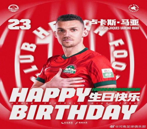 今天是河南足球俱乐部球员卢卡斯·马亚和杨意林的生日,让午夜福利视频导航一同祝福他们生日快乐!