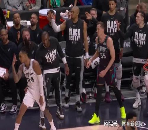 值得一提的是,本场比赛还差点上演了全武行。比赛进行到中段,坎宁安推人后,凯尔登-约翰逊上前理论,结果杜伦又摆出一副要干架的架势。好在马刺队团队纪律性极佳,且发生摩擦的又是队内替补席的老大哥凯尔登,他直接假装无辜走开,避免了事态的进一步升级。要是换成黄蜂这样的队伍,估计早就打起来了。活塞队的现场解说还调侃道:“如果斯图尔特在场,估计早就干架了。”这句话差点没把我笑喷。