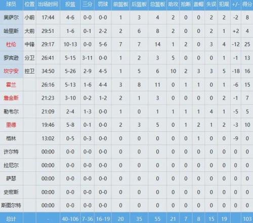 文班亚马(23届状元)防守端影响力巨大,屡次让21届状元坎宁安吃瘪,后者全场出手26次仅中5球得到16分6板10助2断3帽,正负值-18全队最低。