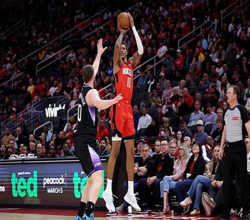 本场比赛中,火箭的先发锋线新星小贾巴里-史密斯(Jabari Smith Jr.)的表现还是相当不错的。史密斯全场出场32分59秒,投篮17中12,三分线外11中6,罚球2中1,得到了全场最高分31分外加9篮板3抢断3盖帽的数据,还有4次失误和3次犯规,正负值也是达到了全场最高的+28。史密斯在本场比赛中火力全开,他展现出了相当不错的个人能力在进攻端简直是势不可挡,他的得分能力和投射能力有了充分地发挥,他不断命中着投篮,起到了关键的作用,他在进攻端对于比赛的影响力也是有目共睹的。除此之外,史密斯在防守端的表现也算得上是可圈可点,他也将自己出色的个人防守能力发挥了出来。史密斯在本场比赛中的表现算得上是顶级3D锋线了,他的神勇状态也是球队能够轻轻松松战胜对手的关键因素。