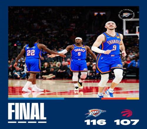 北京时间2月25日,NBA常规赛卫冕冠军雷霆客场对阵猛龙,雷霆在最多领先25分情况下,遭遇猛龙疯狂反扑末节追平比分。华莱士关键攻传表现率领雷霆重新取得领先,最终雷霆116-107战胜猛龙收获3连胜巩固联盟第一,猛龙结束2连胜。