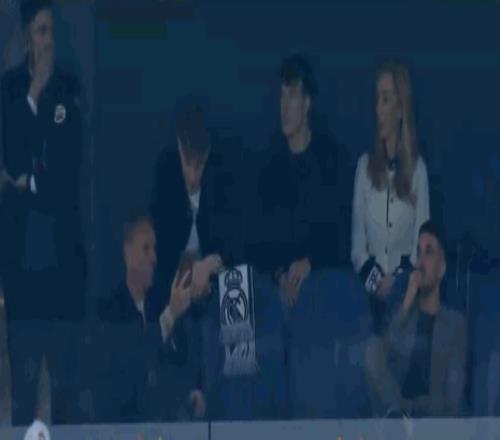 第79分钟,镜头给到场边,赫伊森看台观战