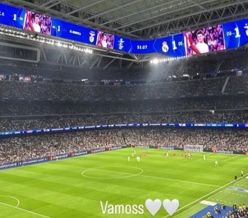 赫伊森本场因伤缺席,在伯纳乌观赛,在社媒晒出了观战的照片。
