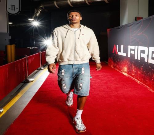 火箭入场穿搭:申京&杜兰特均选择黑色套装小贾卫衣短裤休闲风_24直播网