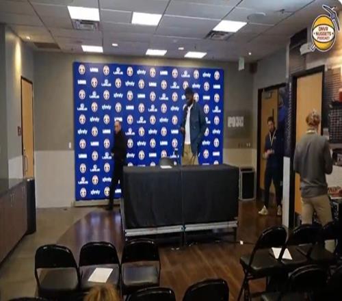 直播吧2月27日宣 在昨日掘金与凯尔特人的比赛结束后,小哈达威来到发布会现场准备接受采访。