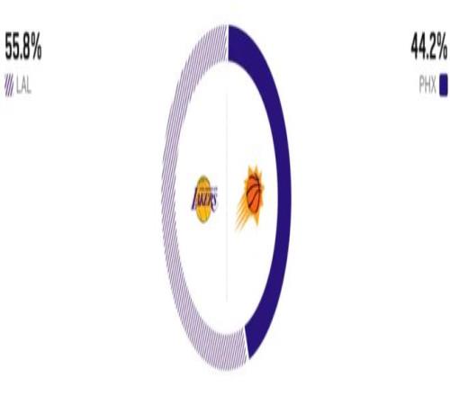 赛前,美媒ESPN对本场比赛进行了胜率预测,湖人队胜率55.8% ,略占优势,太阳胜率则仅有44.2% 。